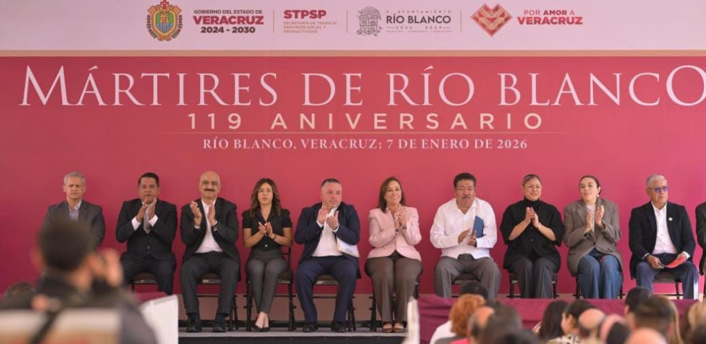 ๐ฅ๐ถฬ๐ผ ๐๐น๐ฎ๐ป๐ฐ๐ผ, ๐ฉ๐ฒ๐ฟ., ๐บ๐ถ๐ฒฬ๐ฟ๐ฐ๐ผ๐น๐ฒ๐ ๐ฌ๐ณ ๐ฑ๐ฒ ๐ฒ๐ป๐ฒ๐ฟ๐ผ ๐ฑ๐ฒ ๐ฎ๐ฌ๐ฎ๐ฒ.-Como cada aรฑo, con la participaciรณn de organizaciones sindicales, confederaciones obreras, trabajadoras y trabajadores, asรญ como autoridades estatales y federales, la gobernadora Rocรญo Nahle Garcรญa encabezรณ la Conmemoraciรณn del 119 Aniversario de los Mรกrtires de Rรญo Blanco, con la guardia de honor y un minuto de silencio ante su monumento.
