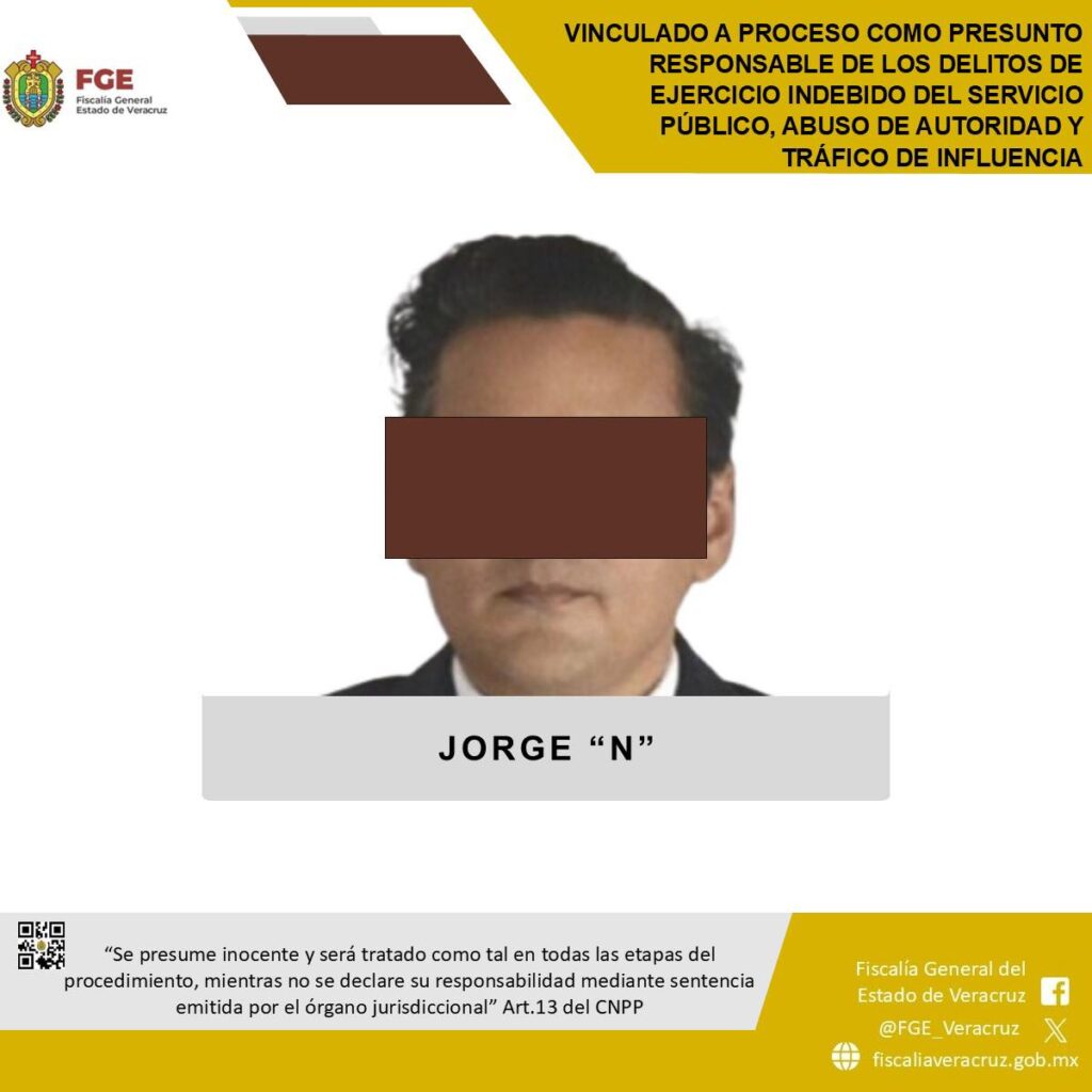 Xalapa, Veracruz.-Como resultado de las ๐ถ๐ป๐๐ฒ๐๐๐ถ๐ด๐ฎ๐ฐ๐ถ๐ผ๐ป๐ฒ๐ ๐บ๐ถ๐ป๐ถ๐๐๐ฒ๐ฟ๐ถ๐ฎ๐น๐ฒ๐, la ๐๐ถ๐๐ฐ๐ฎ๐น๐ถฬ๐ฎ ๐๐ฒ๐ป๐ฒ๐ฟ๐ฎ๐น ๐ฑ๐ฒ๐น ๐๐๐๐ฎ๐ฑ๐ผ ๐ฑ๐ฒ ๐ฉ๐ฒ๐ฟ๐ฎ๐ฐ๐ฟ๐๐, a travรฉs de la ๐๐ถ๐๐ฐ๐ฎ๐น๐ถฬ๐ฎ ๐ฑ๐ฒ ๐๐ป๐๐ฒ๐๐๐ถ๐ด๐ฎ๐ฐ๐ถ๐ผ๐ป๐ฒ๐ ๐ ๐ถ๐ป๐ถ๐๐๐ฒ๐ฟ๐ถ๐ฎ๐น๐ฒ๐, logrรณ que la ๐ฎ๐๐๐ผ๐ฟ๐ถ๐ฑ๐ฎ๐ฑ ๐ท๐๐ฑ๐ถ๐ฐ๐ถ๐ฎ๐น otorgara la ๐๐ถ๐ป๐ฐ๐๐น๐ฎ๐ฐ๐ถ๐ผฬ๐ป ๐ฎ ๐ฝ๐ฟ๐ผ๐ฐ๐ฒ๐๐ผ en contra de ๐๐ผ๐ฟ๐ด๐ฒ โ๐กโ, seรฑalado como presunto responsable de los delitos de ๐ฒ๐ท๐ฒ๐ฟ๐ฐ๐ถ๐ฐ๐ถ๐ผ ๐ถ๐ป๐ฑ๐ฒ๐ฏ๐ถ๐ฑ๐ผ ๐ฑ๐ฒ๐น ๐๐ฒ๐ฟ๐๐ถ๐ฐ๐ถ๐ผ ๐ฝ๐ฬ๐ฏ๐น๐ถ๐ฐ๐ผ, ๐ฎ๐ฏ๐๐๐ผ ๐ฑ๐ฒ ๐ฎ๐๐๐ผ๐ฟ๐ถ๐ฑ๐ฎ๐ฑ ๐ ๐๐ฟ๐ฎฬ๐ณ๐ถ๐ฐ๐ผ ๐ฑ๐ฒ ๐ถ๐ป๐ณ๐น๐๐ฒ๐ป๐ฐ๐ถ๐ฎ.