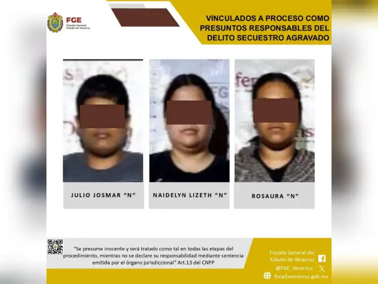 Posteriormente, el 3 de marzo, derivado de actos de investigación realizados en la colonia Pedernales del municipio de Martínez de la Torre, se logró la liberación de la víctima, así como la detención en flagrancia de Julio Josmar “N”, Naidelyn Lizeth “N”, Rosaura “N”.