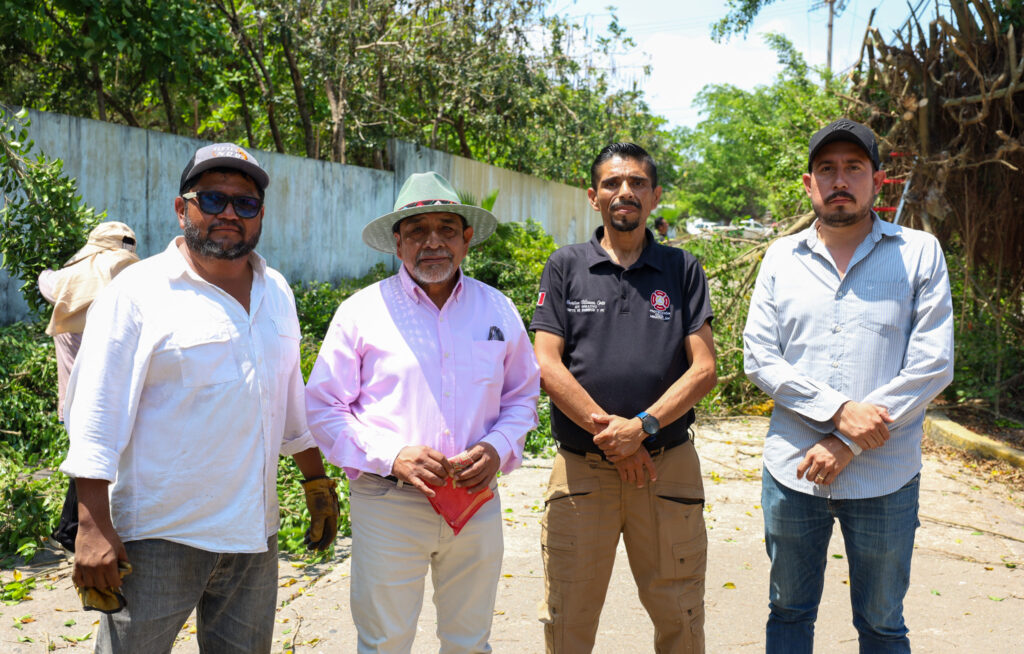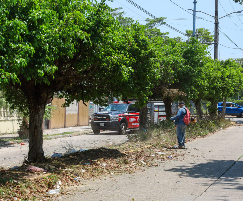Minatitlán, Veracruz. 24 de marzo de 2026.-El presidente municipal, maestro Guillermo Reyes Espronceda, supervisó la jornada de limpieza y mantenimiento de los camellones que se ubican en la calle Roberto Koch, ubicada en la colonia Salubridad.
