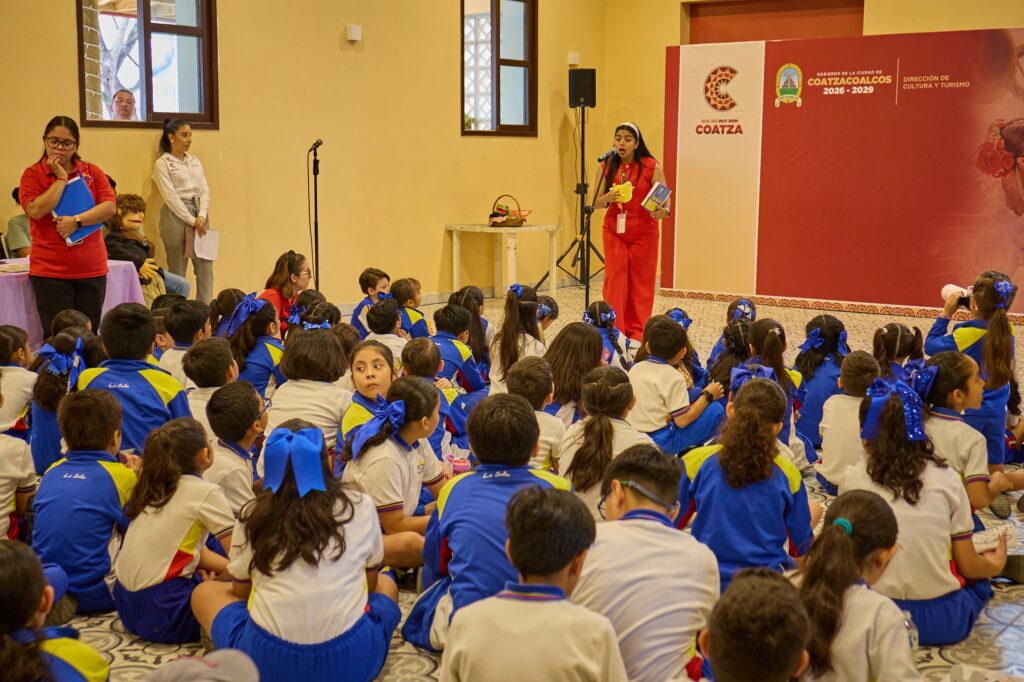 Coatzacoalcos, Ver., 12 de marzo de 2026.- Más de 300 niñas y niños de Coatzacoalcos participaron en una jornada cultural y de fomento a la lectura realizada en el espacio “Chantli Casa del Pueblo”, como parte del programa Biblioteca Rodante que impulsa el Gobierno Municipal encabezado por el alcalde Pedro Miguel Rosaldo García.