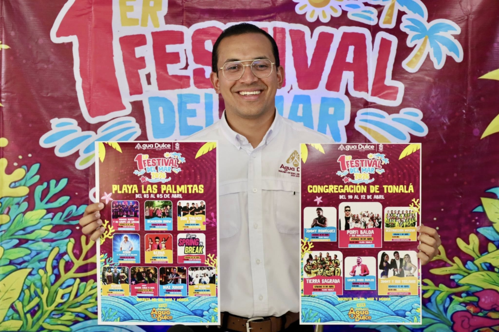 Agua Dulce, Ver.– El alcalde Ángel Delgado Ramírez presentó de manera oficial el Primer Festival del Mar 2026, un evento que reunirá a artistas locales, nacionales e internacionales, con el objetivo de impulsar el turismo y la economía.