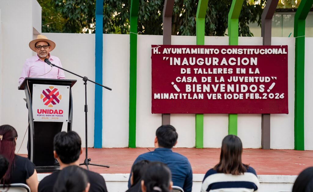 Minatitlán, Veracruz. 11 de febrero de 2026.-El alcalde, maestro Guillermo Reyes Espronceda, acudió a la inauguración de los talleres y programas que ofrece el Departamento de la Juventud, espacios creados para impulsar el talento, la creatividad y el desarrollo integral de las y los jóvenes del municipio.
