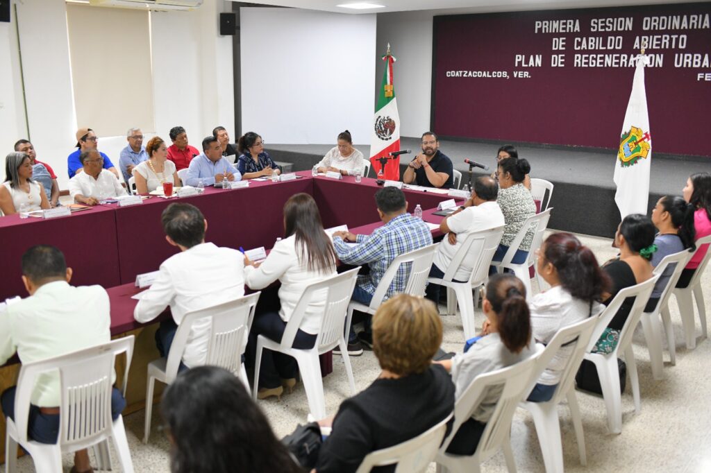Coatzacoalcos, Ver., 27 de febrero de 2026.- El Gobierno de Coatzacoalcos, encabezado por el alcalde, Pedro Miguel Rosaldo García, celebró la Primera Sesión Ordinaria de Cabildo Abierto, en la que se presentó como único punto del orden del día el Plan de Regeneración Urbana del municipio.