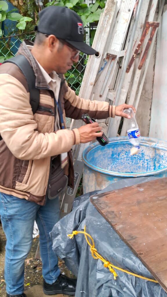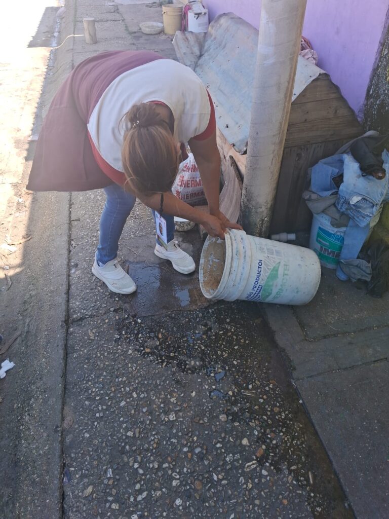 Durante estas jornadas, personal capacitado realiza inspecciones técnicas en patios, áreas verdes, tinacos y contenedores de agua, promoviendo entre la ciudadanía el protocolo de saneamiento básico: “Lava, Tapa, Voltea y Tira”.
